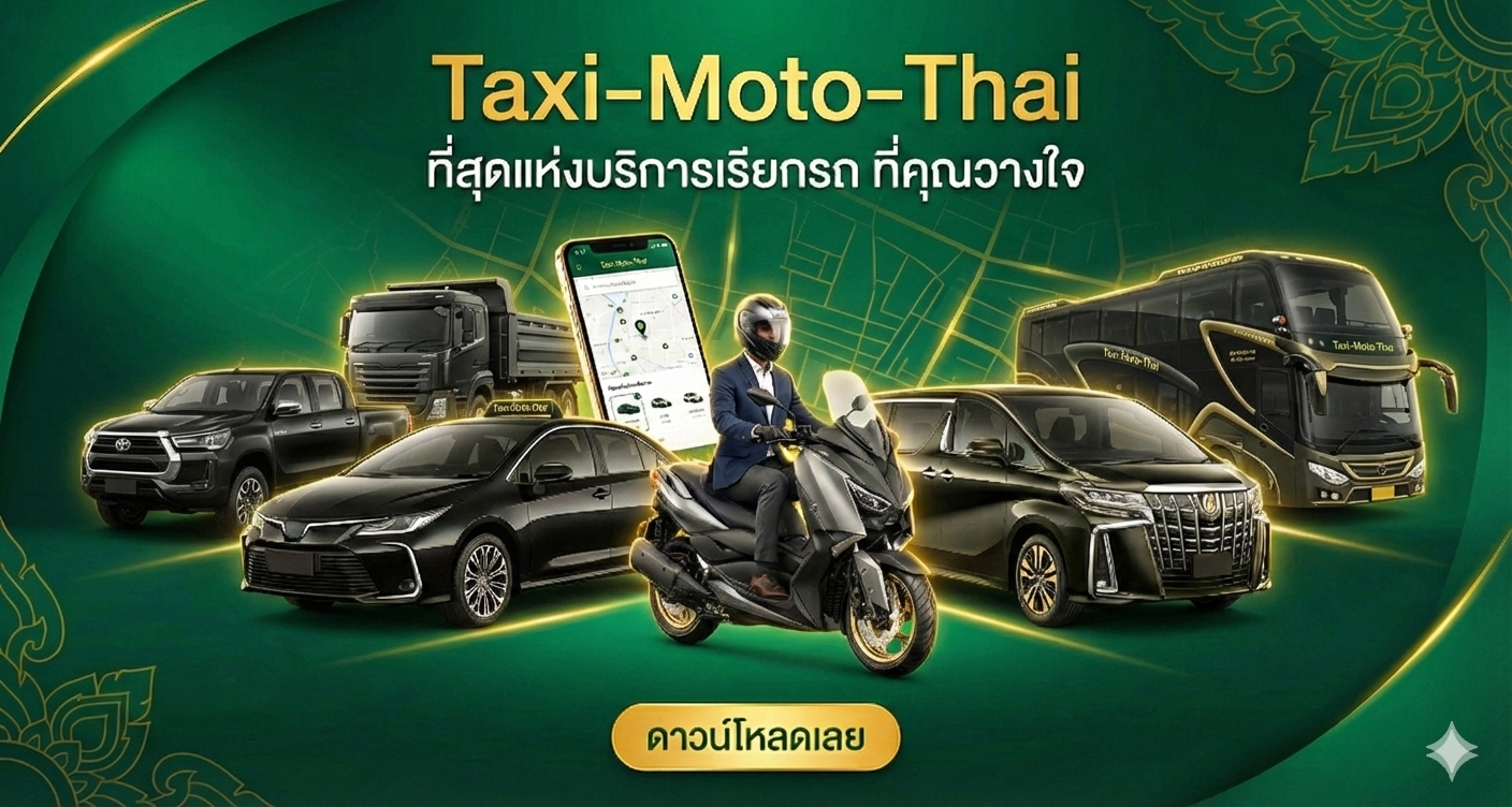 เน้นความพรีเมียมและความน่าเชื่อถือ: ยกระดับการเดินทางของคุณ... สู่มาตรฐานที่คุณวางใจ Body: เพราะทุกการเดินทางมีความหมาย Taxi-Moto-Thai คัดสรรบริการที่ดีที่สุดเพื่อคุณ ทั้งวินมอเตอร์ไซค์ แท็กซี่ และรถตู้พรีเมียม ปลอดภัย สะดวกสบาย ในราคาที่โปร่งใส เรียกง่ายเพียงปลายนิ้ว CTA: โหลดฟรี! เริ่มต้นการเดินทางที่เหนือกว่าวันนี้